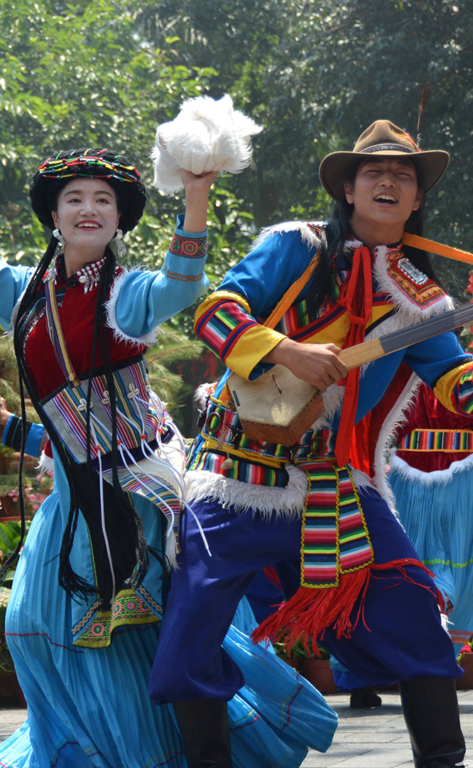 云南省境內的藏族人口約12萬,主要聚居在云南迪慶藏族自治州,少量散居于麗江、貢山、永勝、寧蒗等縣。藏族信奉藏傳佛教,白色被藏族視為純潔神圣的象征。藏族村占地21畝,村內有大小中甸地區的坡頂民居和德欽地區的雕樓式平頂民居。莊嚴神圣的藏傳佛寺,壯觀的迎賓白塔,象征吉祥和睦的“白牦?!钡袼芘c獨具風格的藏式建筑互為映襯,相得益彰。藏族主要節日有:藏歷年、丹巴日古(七月夏游節)、昂曲節、格冬節等;主要禮節是...